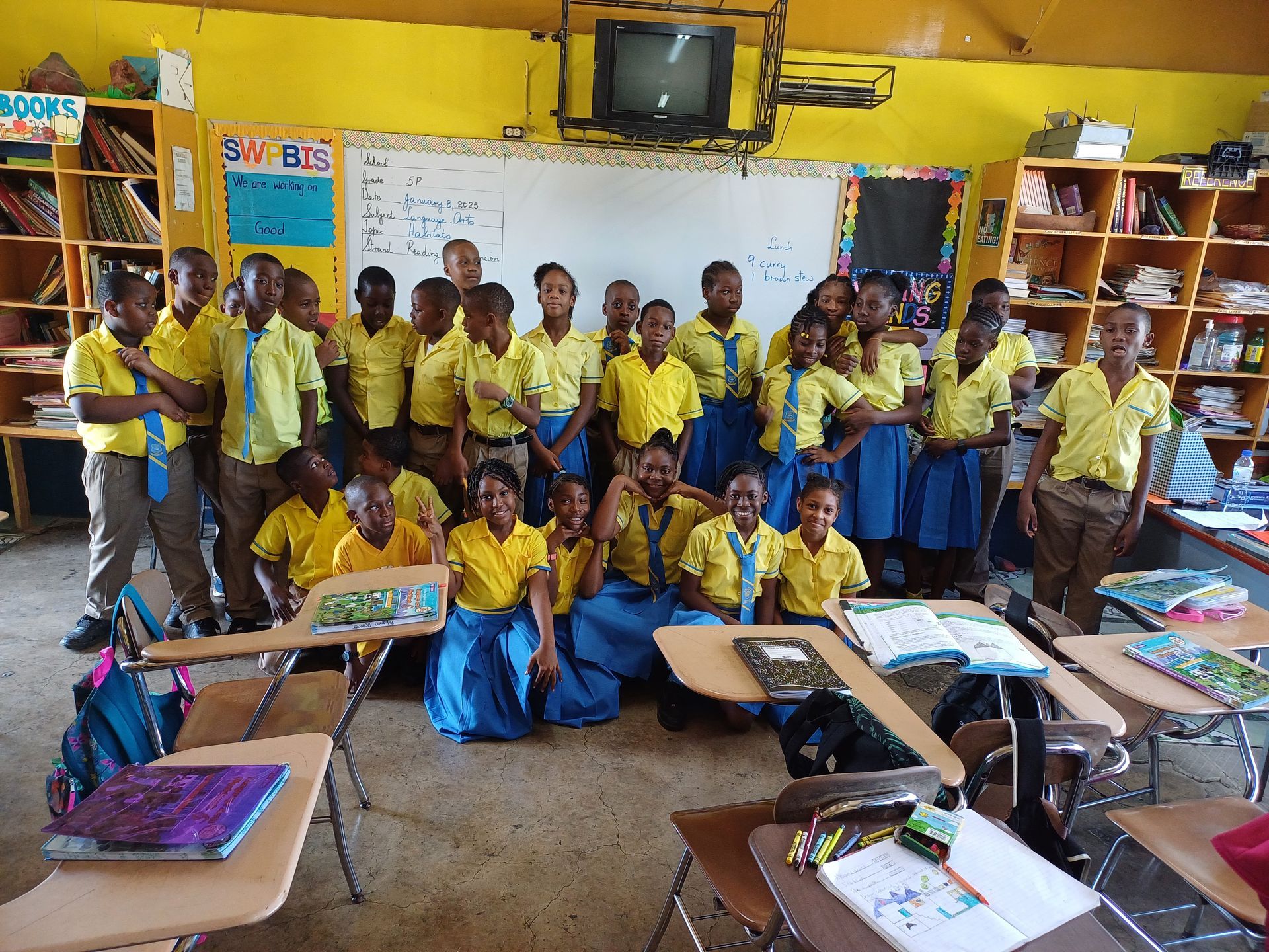 JET-UK BLIEP STEAM Workshop with grade 5 at Wait - A - Bit Primary School, Trelawny on 21st January 2025. Facilitator: Seymour Mattis, Chairman, Director, Educator & HR Consultant, JET-UK. Principal: Ms. Keresha McIntosh.